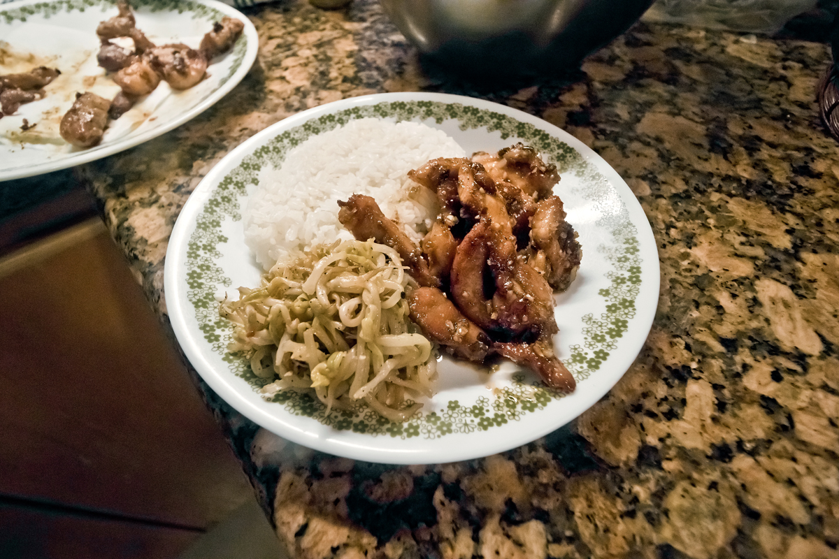 1/2 lbs. of bone in/boneless chicken thighs (normally use 1 pound, but I only had half a pound left over for cooking)